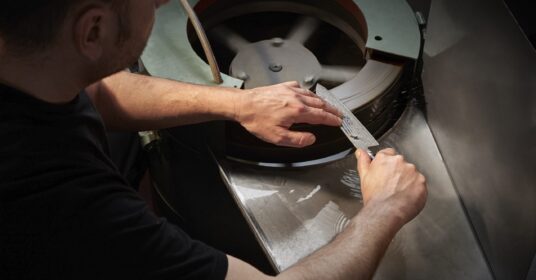 Erlebe japanische Handwerkskunst in Perfektion. In 42 Tagen und 100 Schritten entstehen in Meisterstücke aus hochwertigem Damaststahl. Dank innovativer Eishärtung bei – 196° und traditionellem Honbazuke-Abzug vereinen unsere Messer extreme Schärfe mit vollendeter Ästhetik.