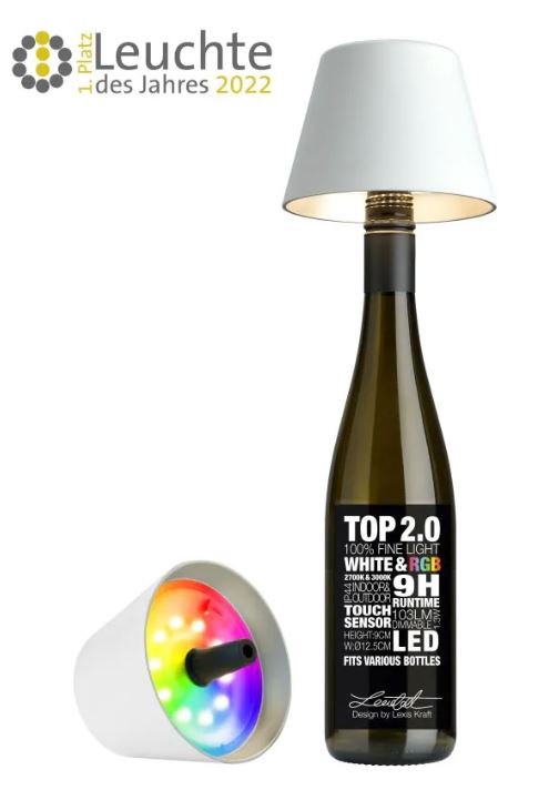 Mit dem Lampenkopf von Sompex verwandeln Sie Ihre Altglas Flasche in ein besonderes Lichtobjekt. Die akkubetriebene Lampe hat eine Gesamtleuchtzeit von max. 40 Stunden. Ob drinnen oder draußen, die Lampe verleiht Ihrer Umgebung ein stylisches Flair. Der konische Silikon- Stopfen passt sich verschiedenen Flaschenhälsen an. Werden Sie Ihr eigener Designer, entscheiden Sie sich für Upcycling in seiner besten Form. Die Top 2.0 ist in verschiedenen Farben erhältlich. Die Lampe wir in einer hübschen runden Schachtel geliefert, ein perfektes und praktisches Geschenk für Ihre Lieben.