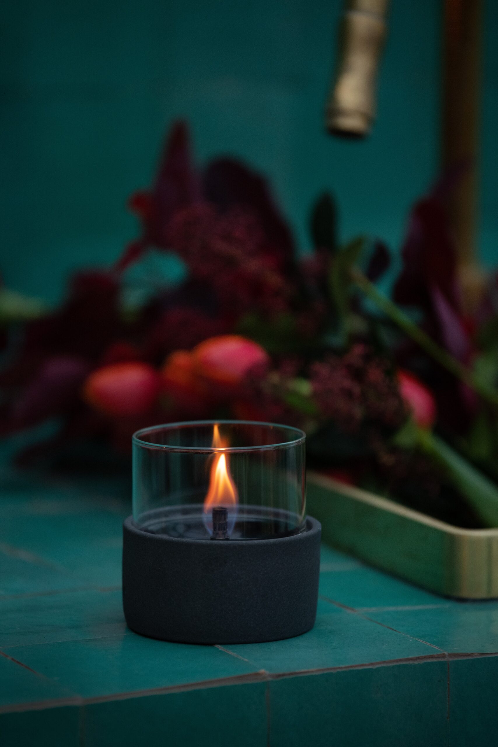 Tischfeuer für den Innen und Aussenbereich. Betrieben mit Tenderfuel Flüssigbrennstoff.