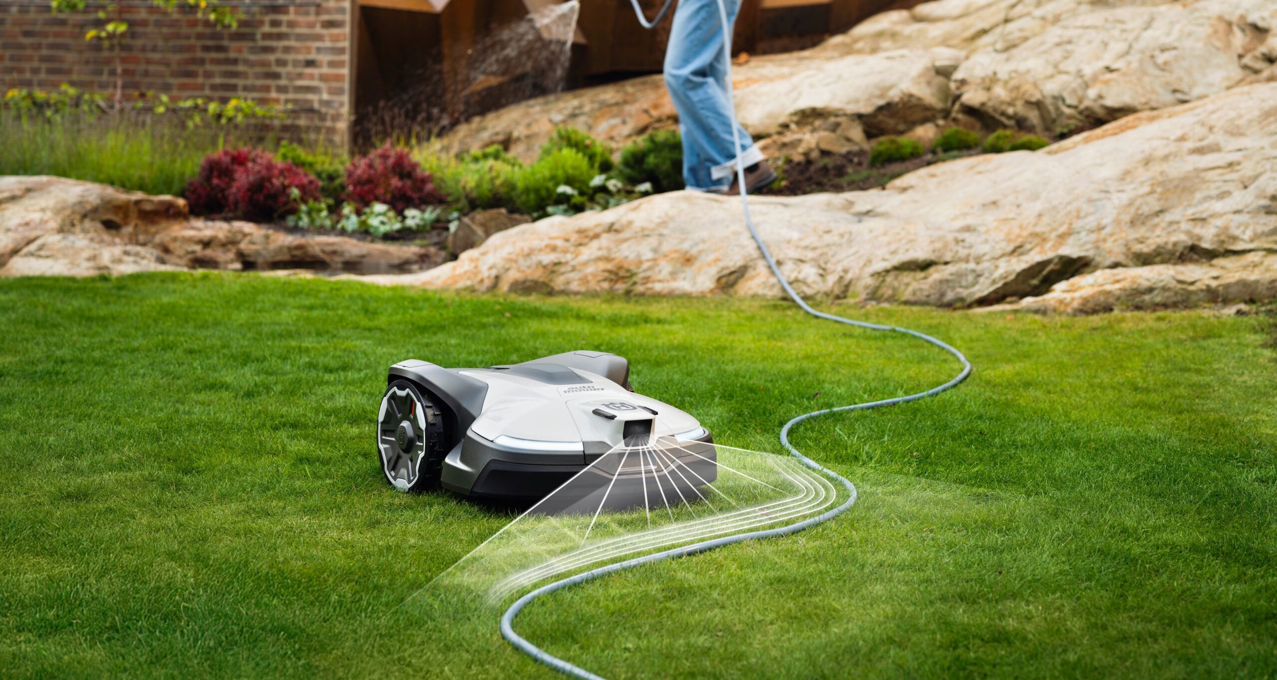 Die eingebaute Kamera nutzt fortschrittliche KI, um Objekte auf dem Rasen zu erkennen und zu identifizieren, und reagiert entsprechend auf der Grundlage der Art des Objekts. Dank des Infrarotlichts vermeidet der Rasenmäher Hindernisse, nimmt Rücksicht auf Wildtiere und stellt eine sicher, dass die gesamte Fläche gemäht wird – auch nachts. Durch die Kombination von KI-Bildverarbeitungstechnologie* und Satellitennavigation ist auch in Bereichen mit schwachen Satellitensignalen eine vollständige Abdeckung aller Mähbereiche gewährleistet. *Die Kamerabilder, die zur Objekterkennung genutzt werden, werden ausschließlich lokal im Mäher verarbeitet und weder gespeichert noch übertragen.