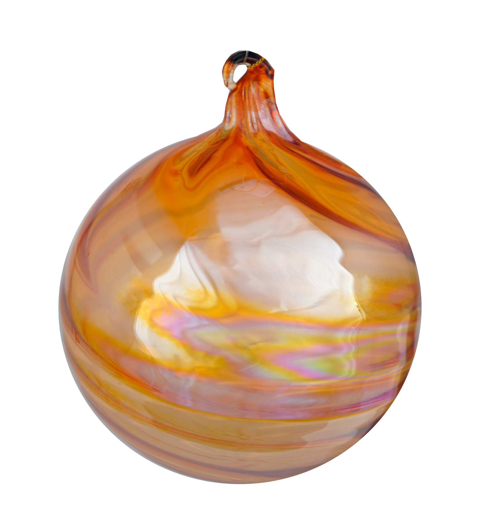 Mundgeblasene Glaskugel mit orangem Muster.