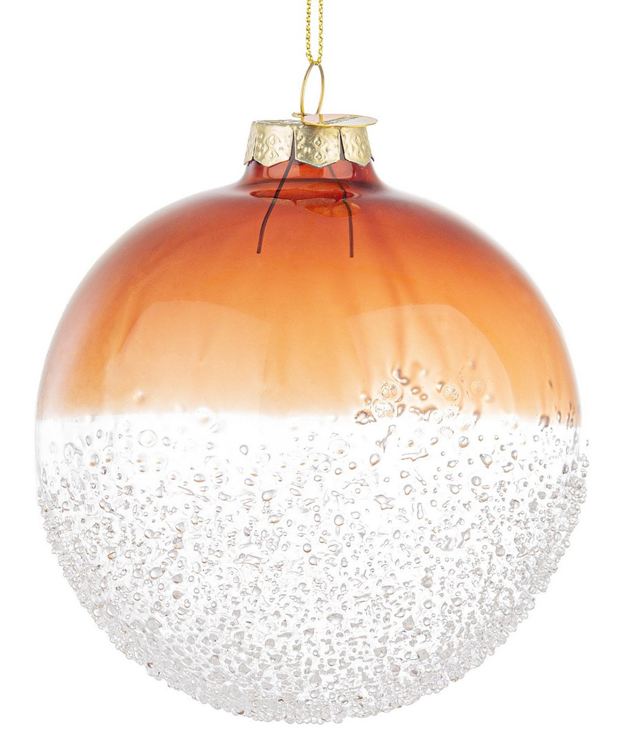 Dekorative Weihnachtskugel in Transparent und Braun.