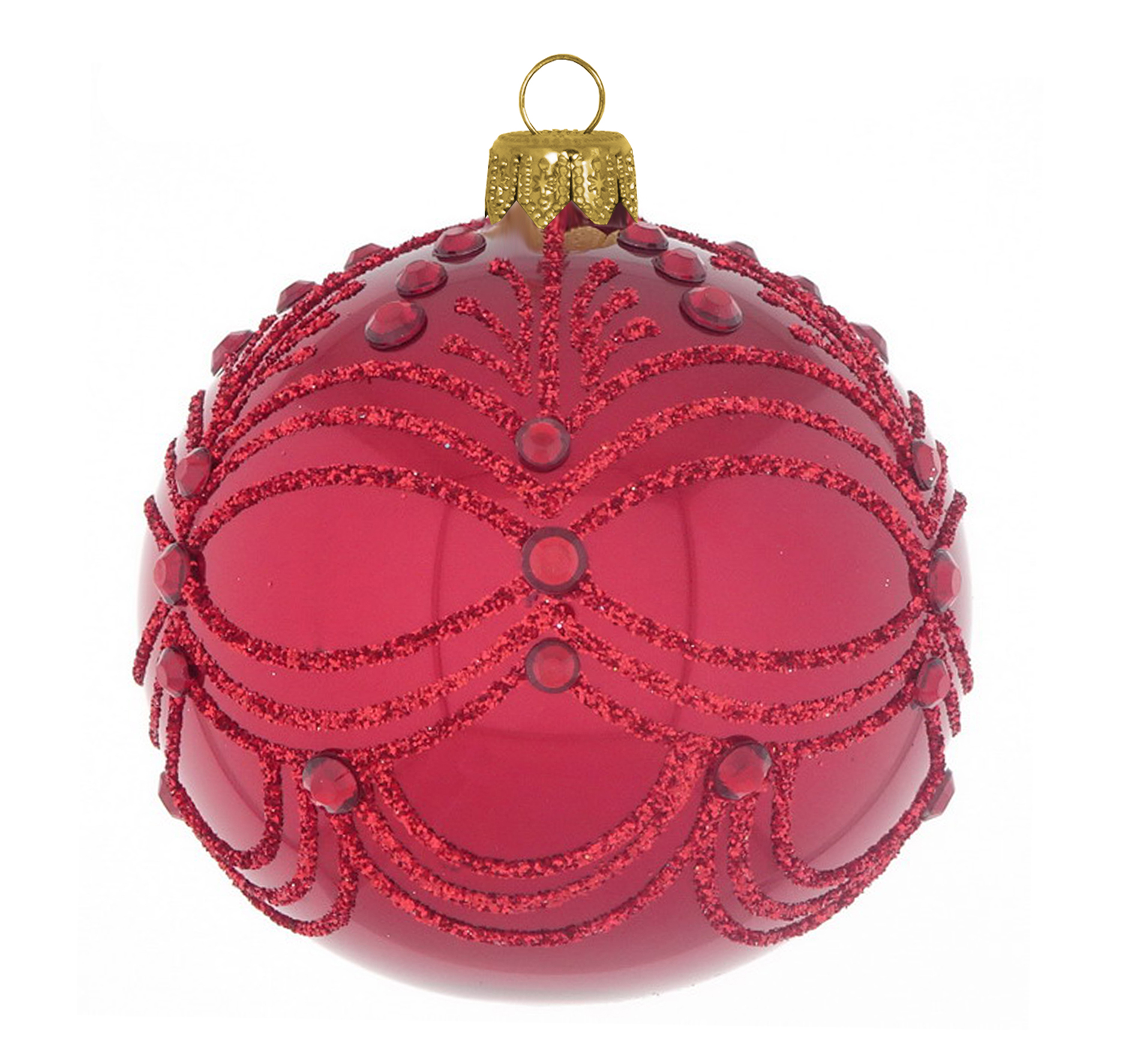 Baumkugel Vesta mit Spitzenmuster verziert in dunkelrot.