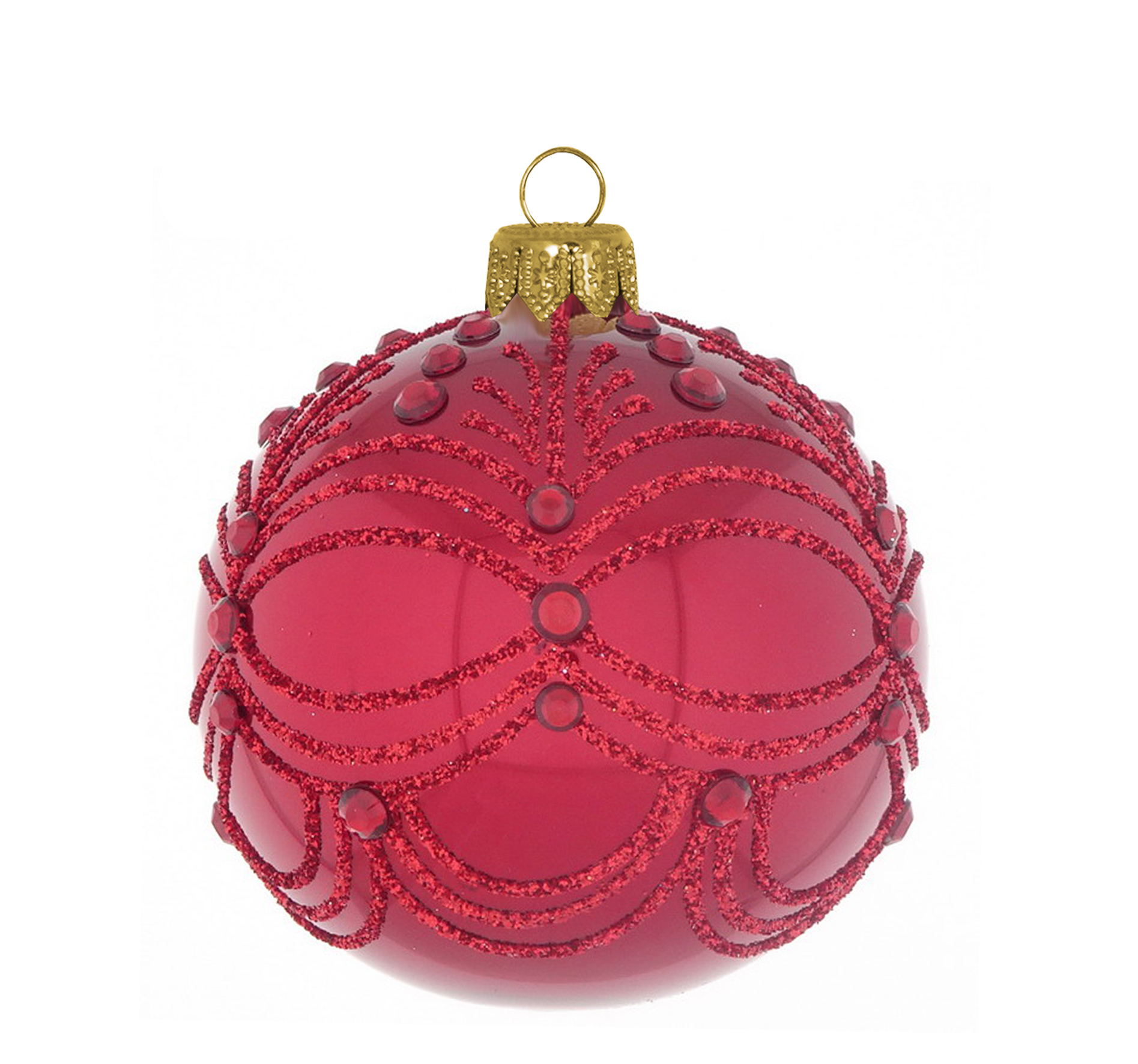 Baumkugel Vesta mit Spitzenmuster verziert in dunkelrot.