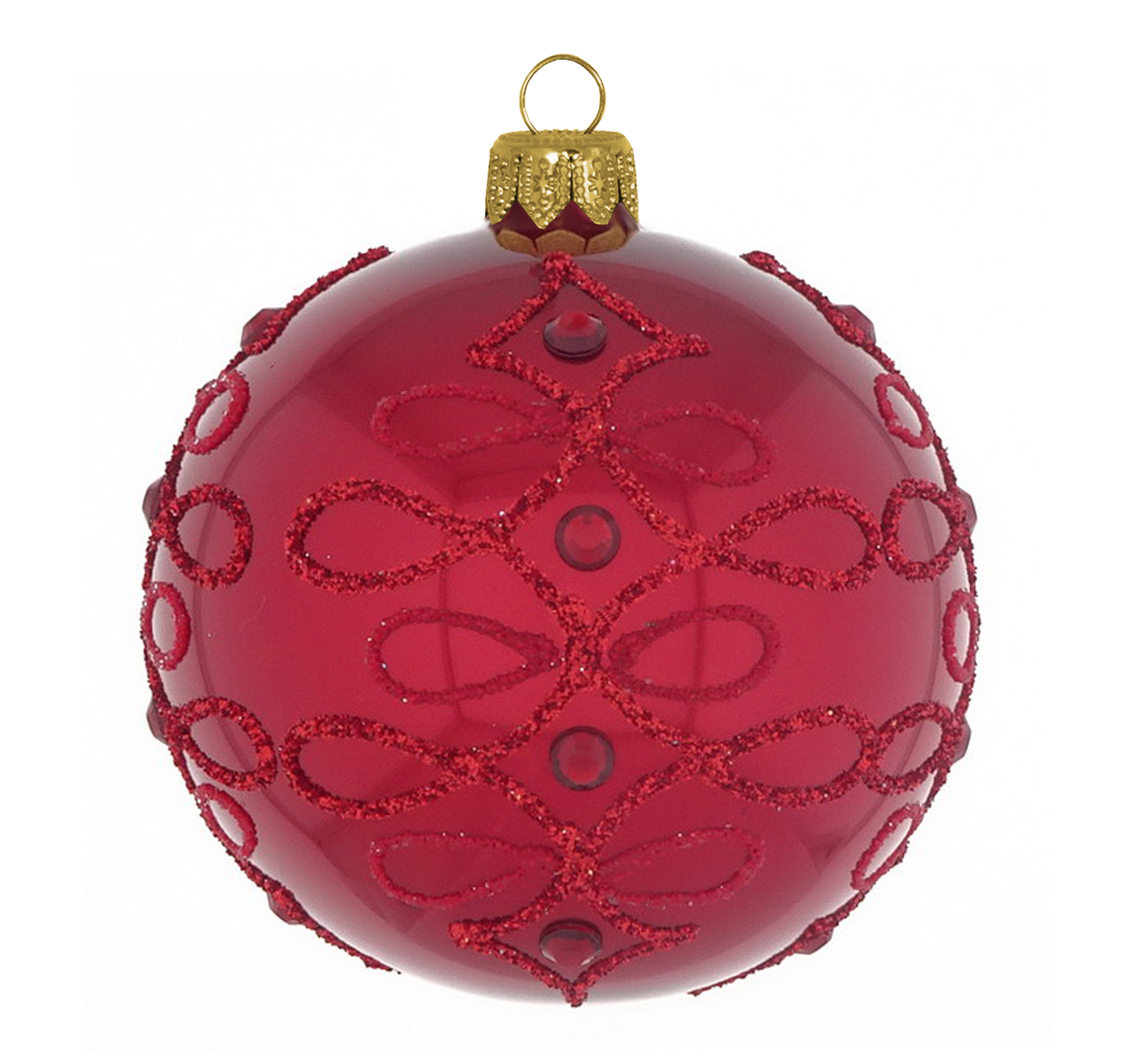 Baumkugel Vesta mit Spitzenmuster verziert in dunkelrot.
