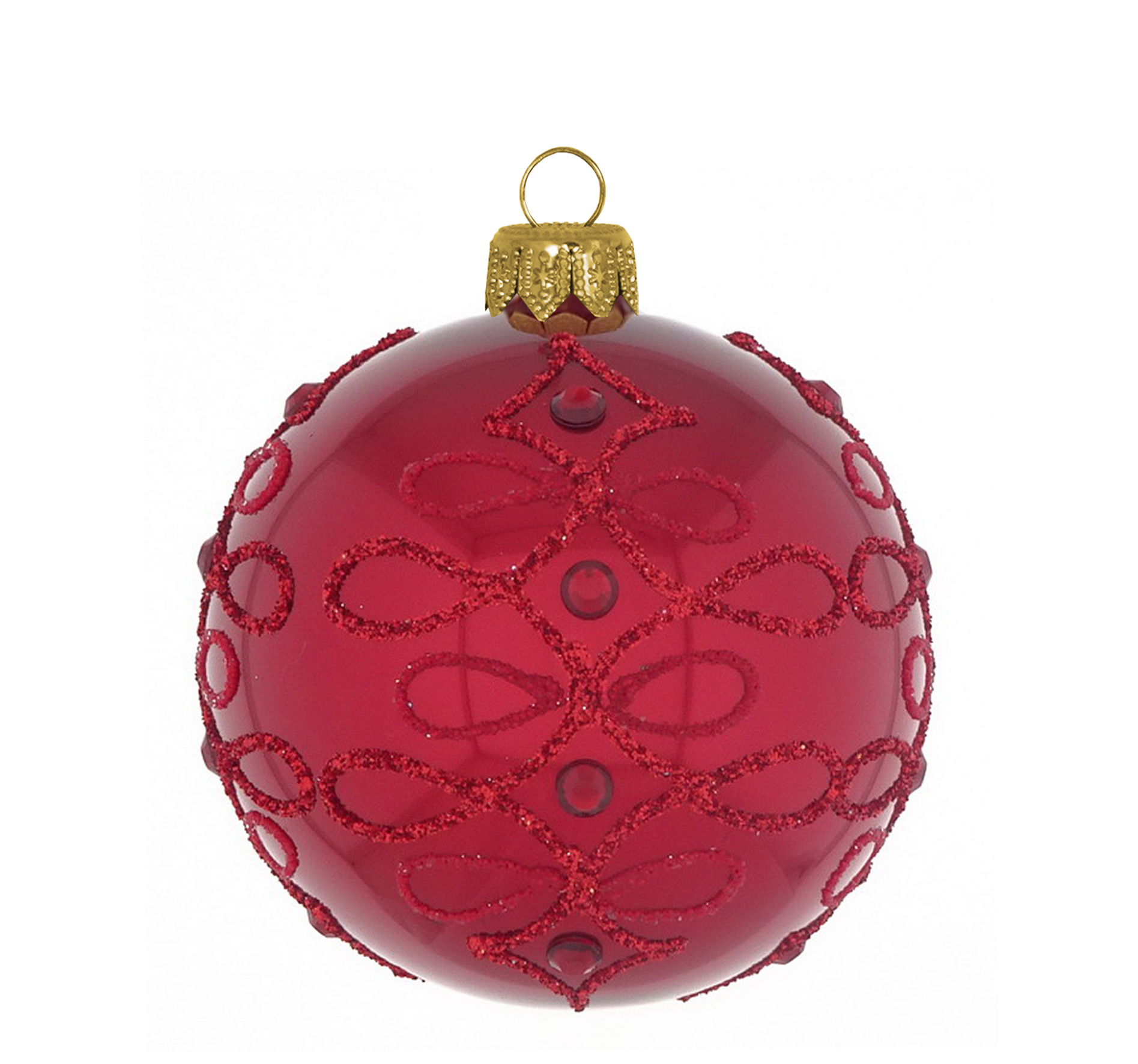 Baumkugel Vesta mit Spitzenmuster verziert in dunkelrot.