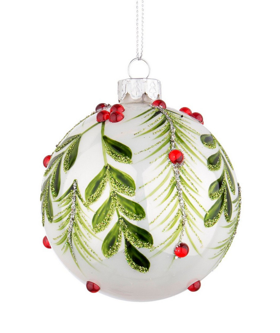 Weihnachtskugel weiss mit Motiv „Berry“