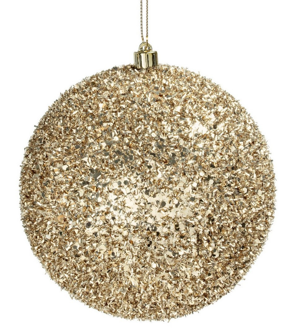 Goldene Weihnachtskugel mit glitzerndem Effekt.