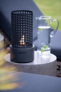Dieses elegante Metalldesignstück ist vielseitig einsetzbar und eignet sich sowohl für den Innen- als auch für den Außenbereich. Dank der Tenderfuel-Technologie genießen Sie stets ein sicheres und sauberes Erlebnis ohne Rauch, Geruch oder Ruß.