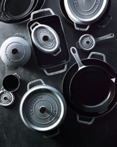 Die Cocotte von Staub eignet sich besonders für schonendes und gesundes Garen. Mit einer Größe von 28 cm und einer Höhe von 18 cm finden Braten, Gemüse oder Fisch in der runden Cocotte in Grafitgrau Platz. Zusammen können Sie ein Volumen von bis zu 6,7 l einnehmen. Darüber hinaus ist die Cocotte von Staub auf allen Herdarten verwendbar. Der wirkungsvollste Teil seiner Ausstattung ist die Emaillierung des Schmortopfs. Die innere, mattschwarze Beschichtung sorgt dafür, dass die Cocotte schnell gebrauchsfertig ist. Zudem wird ein hervorragender Schmoreffekt erreicht, ebenso verbessern sich die Eigenschaften bei jeder Anwendung. Die Emaille ist dagegen für die ideale Weiterleitung der Hitze verantwortlich. Mit der Cocotte von Staub kommen sowohl Hobby- als auch professionelle Köche auf ihre Kosten. Besonders praktisch ist ihre Beschaffenheit aus Gusseisen, da es sehr robust ist. Hinzu kommt die leichte Art der Reinigung, die wertvolle Zeit spart. Für die Ableitung des sich sammelnden Kondenswassers sorgt zudem die Tropfenstruktur des Deckels, durch die es gleichmäßig auf das Gargut verteilt wird. Insgesamt punktet diese Cocotte durch effektive Beschichtungen, leichte Handhabung und ein perfektes Schmorergebnis, wovon Sie sich selbst überzeugen sollten.