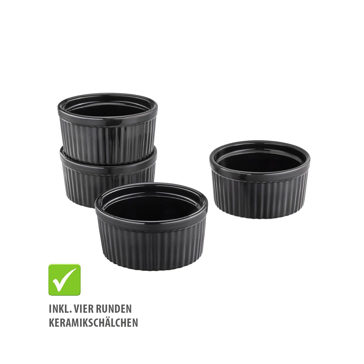 Mit dem Créme Brûlée- Set Zuca karamellisieren Sie Desserts wie ein Profi. Der einstellbare Gasbrenner ermöglicht präzises Arbeiten, während die 4 schwarzen Keramikschalen mit Rippenstruktur für gleichmäßige Hitzeverteilung sorgen. Ideal für Crème Brûlée, Pudding und Gratins. Inklusive Kindersicherung und Flammenregulierung für sicheres Handling.