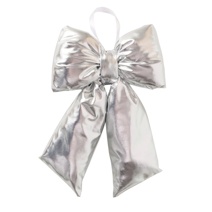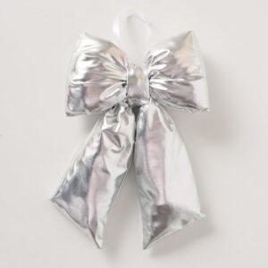 Glänzende Deko-Schleife in Silber – ein elegantes Highlight für deine festliche Dekoration. Die edle Metallic-Optik sorgt für modernen Glanz an Tür, Fenster, Geschenk oder Weihnachtsbaum. Mit praktischem Band zum Aufhängen – vielseitig und stilvoll kombinierbar.