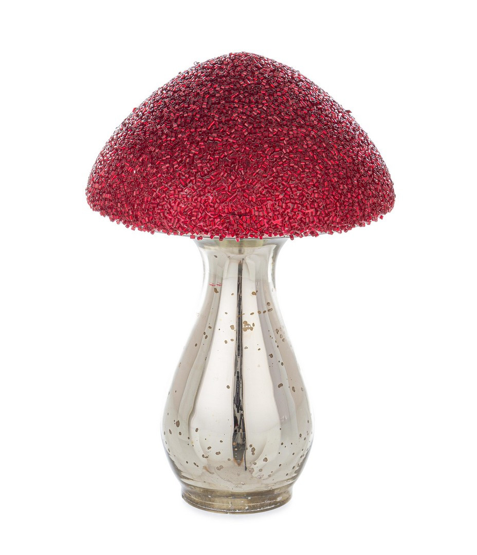 Ein dekorativer Pilz in leuchtendem Rot, verziert mit funkelndem Glitzer. Perfekt als festlicher Hingucker in herbstlicher oder weihnachtlicher Dekoration. Setzt glänzende Akzente auf dem Tisch, im Regal oder zwischen Tannenzweigen.
