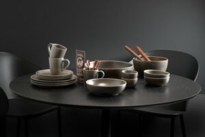 Die Serie Saisons beluga, besticht durch ihre minimalistische Formensprache. Versehen mit einer Effektglasur, die bei jedem Brand anders reagiert. Die Dekorfarben Almond und Beluga sind inspiriert vom warmen Klima Portugals. Almond erinnert an die Farbvielfalt süßer Mandeln, Beluga schimmert in den warm-grauen Nuancen der gleichnamigen Linse. In verschiedenen Formen und Größen erfüllt die Genuss-Serie alle Voraussetzungen für die Ansprüche der modernen Lebensräume.