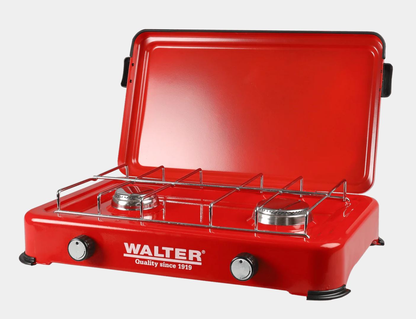 • 2 Kochstellen mit stabiler verchromter Topfauflage