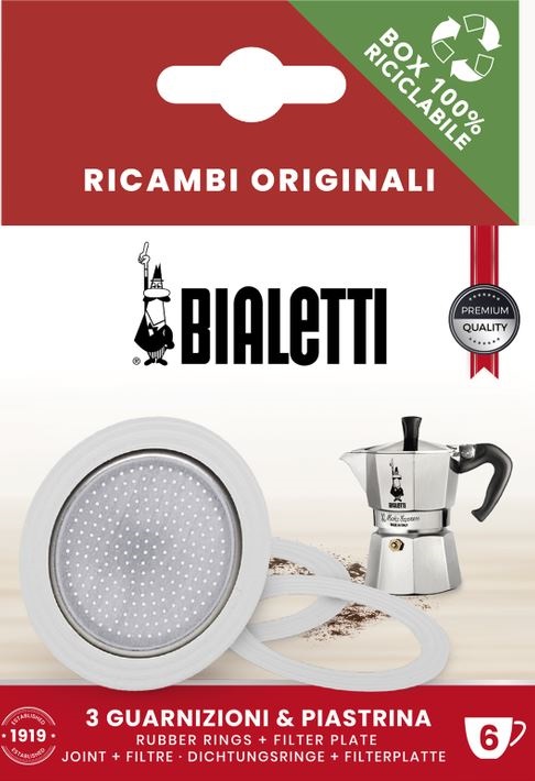 Ersatzset für 6 Tassen Aluminium, enthalten sind 3 Dichtungen + 1 Filter Für Moka Express.