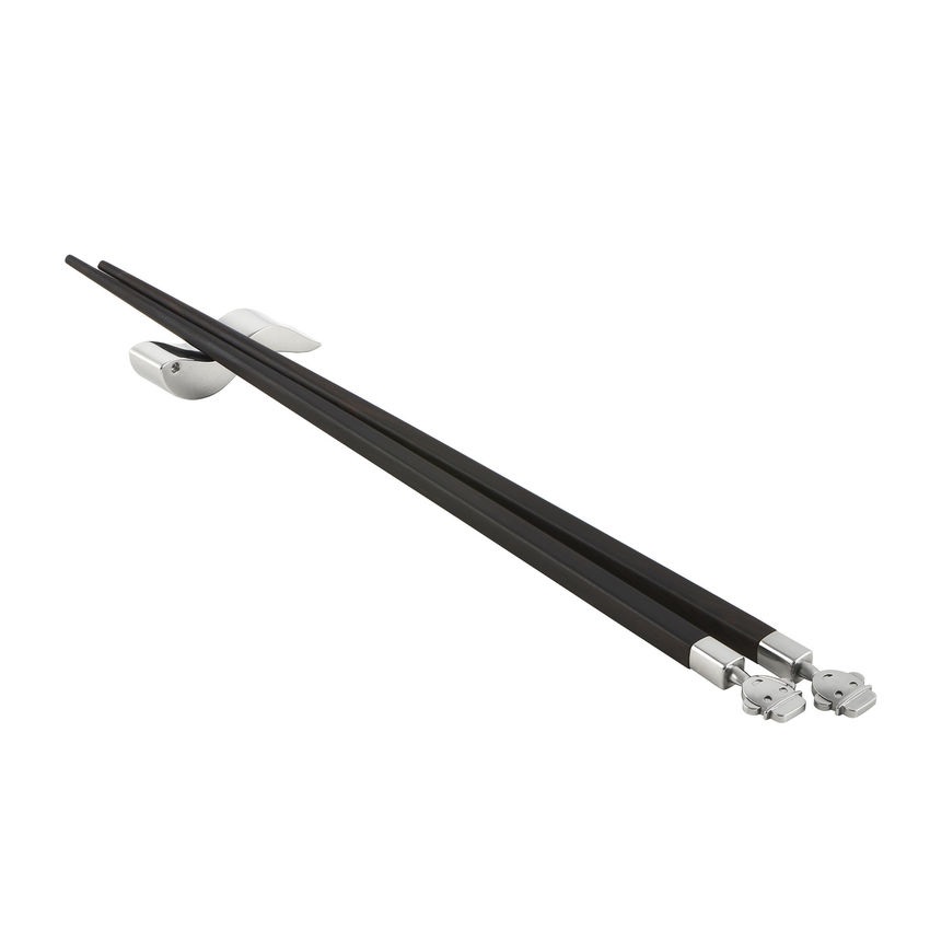 Set bestehend aus zwei Essstäbchen aus Ebenholz und Halter aus Edelstahl 18/10.