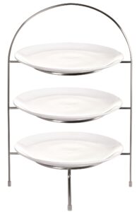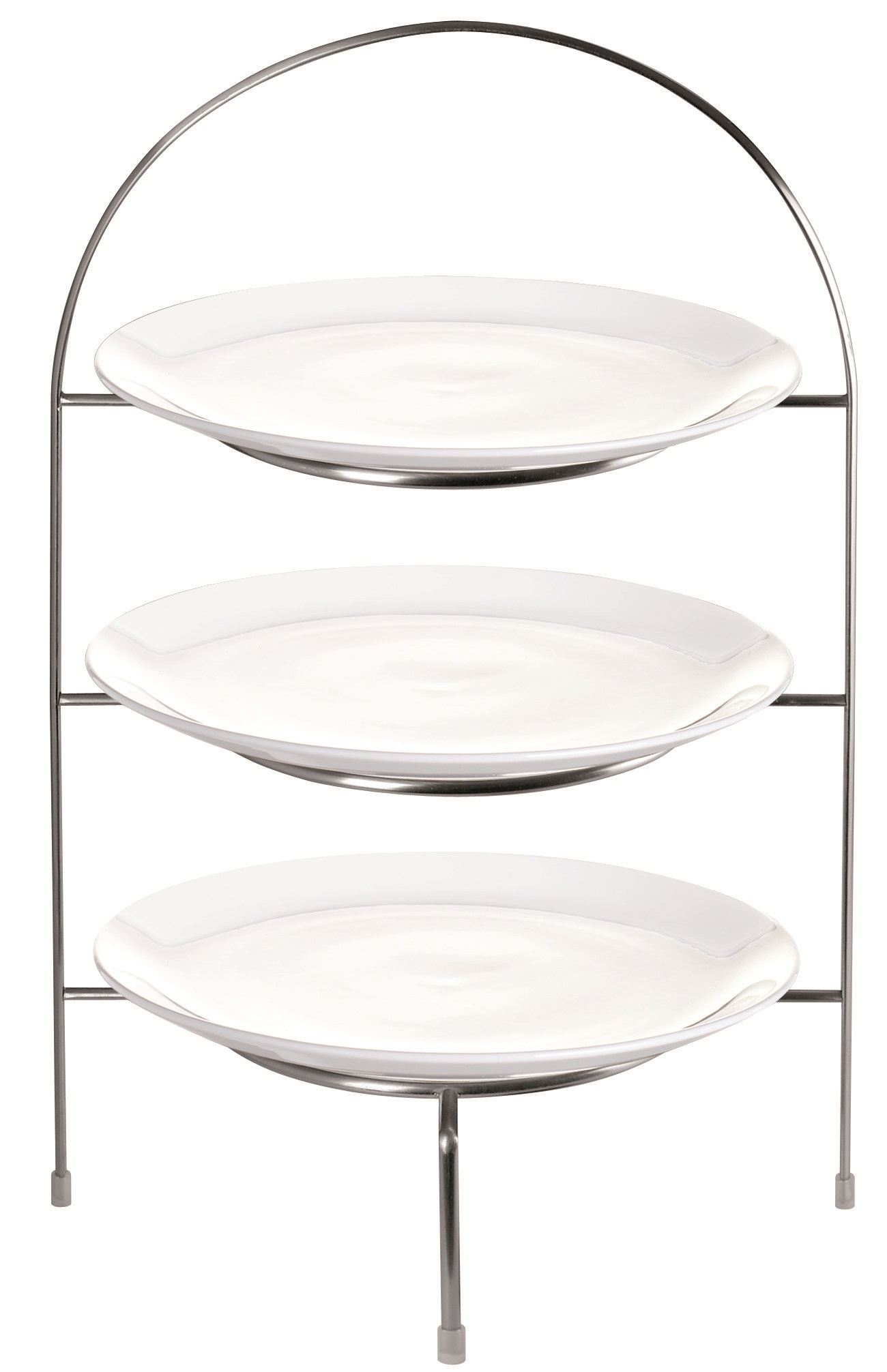 Der Tellerständer schafft Platz auf Ihrem Esstisch! Präsentieren Sie auf dieser Etagere zum Beispiel eine leckere Wurst- und Käseauswahl sowie frisches Obst zum Frühstück. Und statt alles nebeneinander zu drapieren, wachsen Sie doch mal in die Höhe und holen sich so eine nette Caféstimmung in Ihr Zuhause! Bis zu drei Teller Ihrer Wahl mit einem Durchmesser von 27 cm passen in die Etagere (Höhe: 49 cm). Damit ist sie individuell zu Ihrem Geschirr dekorierbar.