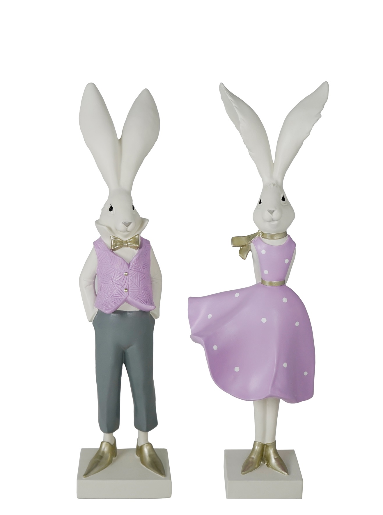 Hasenfigur in fliedernem Anzug.