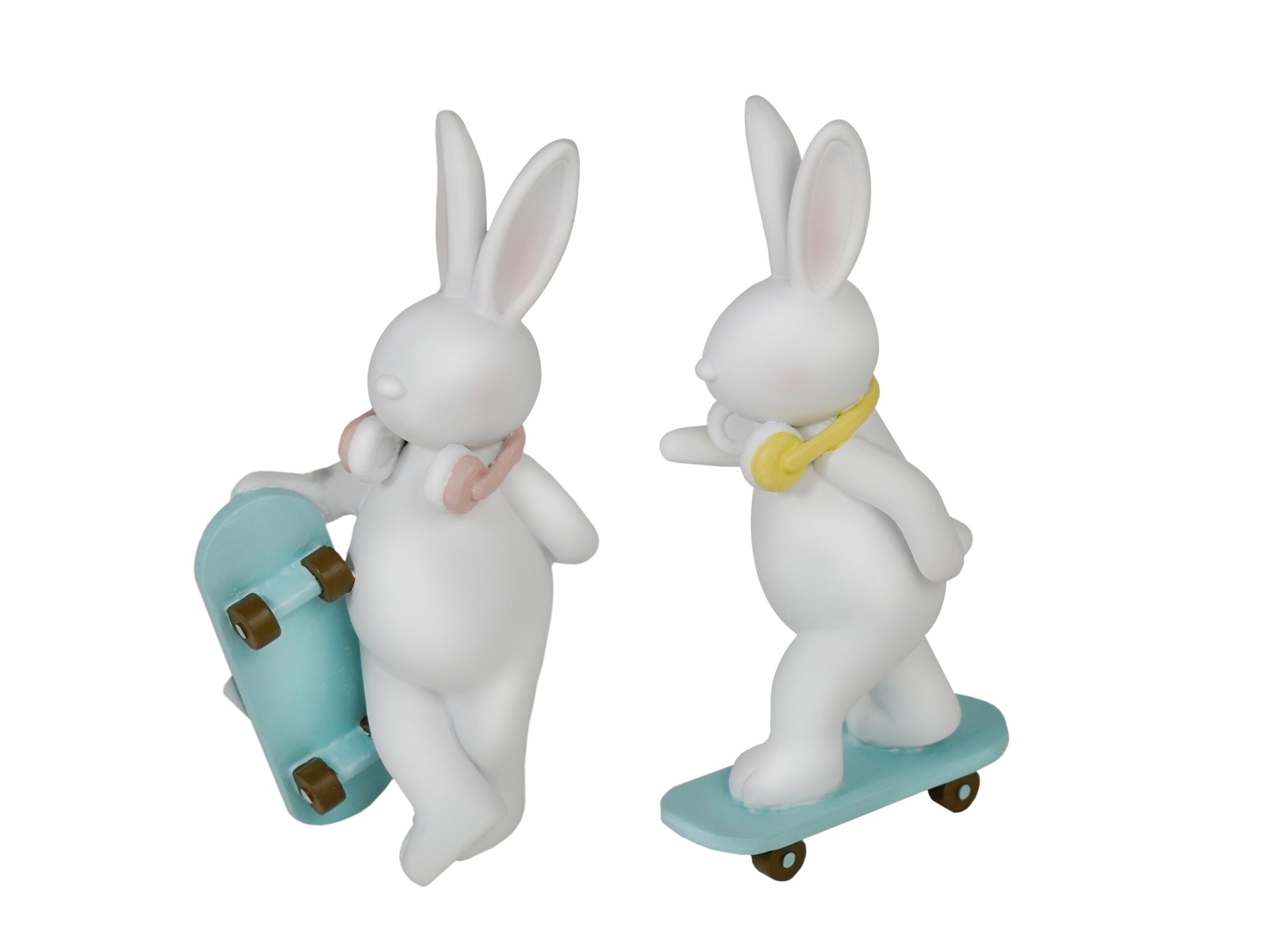 Figur Hase weiss mit Skateboard.