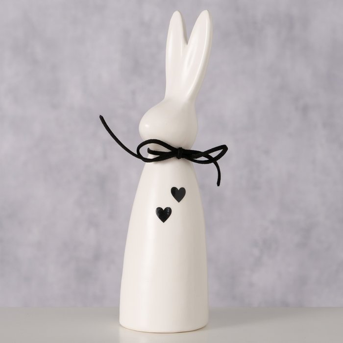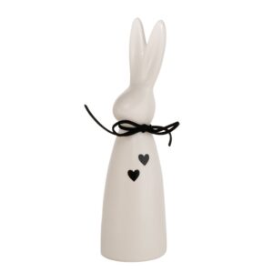 Schlicht aber Niedlich ist der Dekohase Timmi in weiß, mit seiner schwarzen Schleife um den Hals und den schwarz aufgemalten Herzen, ist er für jeden ein kleiner Hingucker.