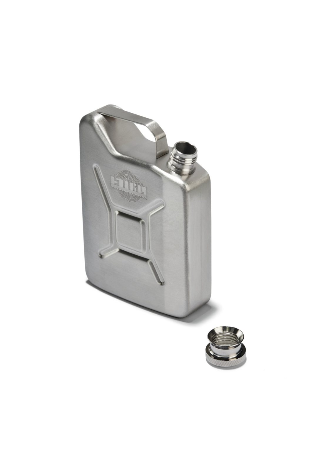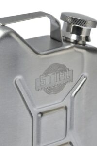 • Edelstahlflachmann in Form eines Benzinkanisters