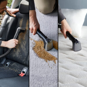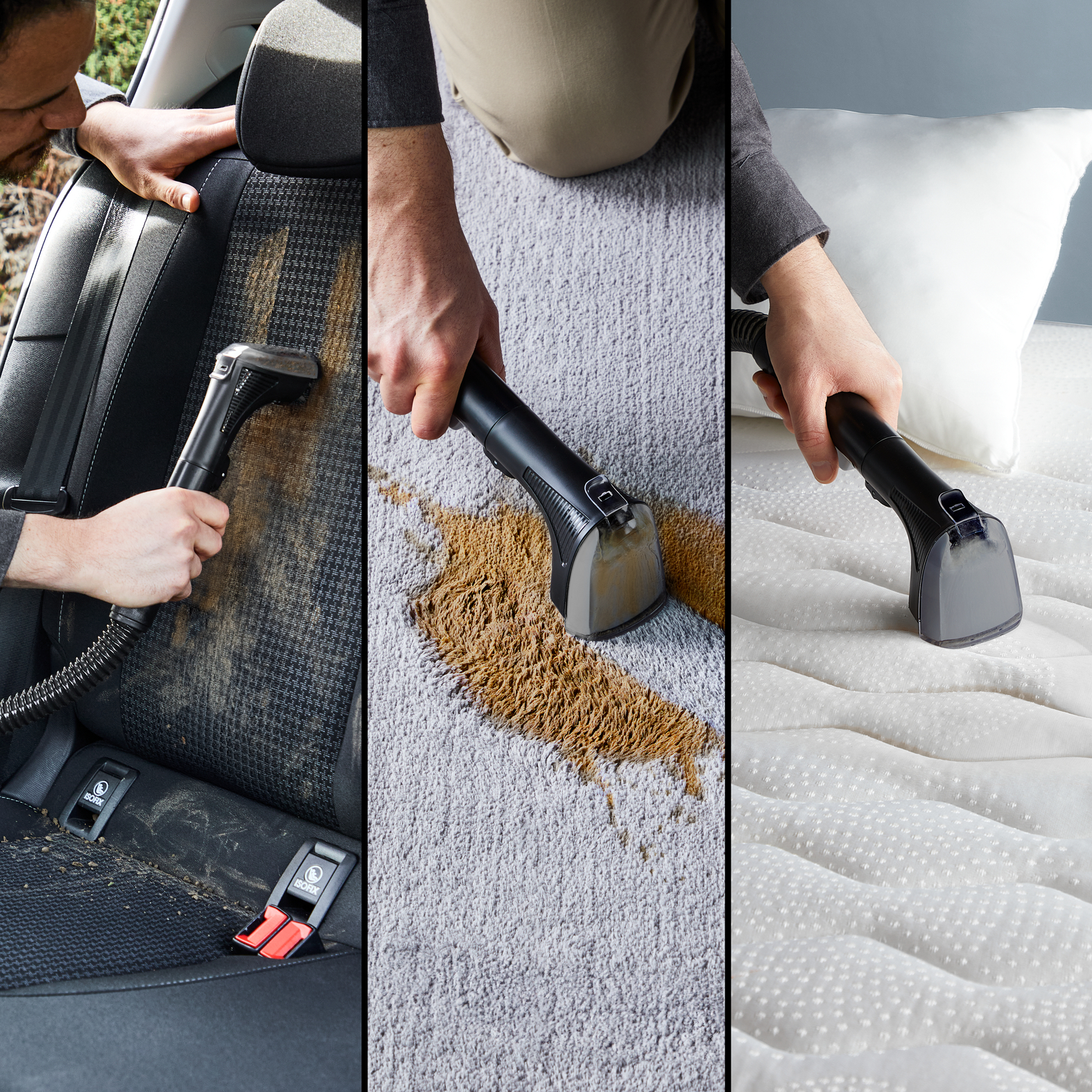 ABSOLUTE VIELSEITIGKEIT FÜR JEDEN BEDARF: Auswechselbare Reinigungsköpfe für Teppiche, Sofas, Innenräume von Autos, Polster und vieles mehr, überall leicht zugänglich und mit komplettem Zubehörsatz