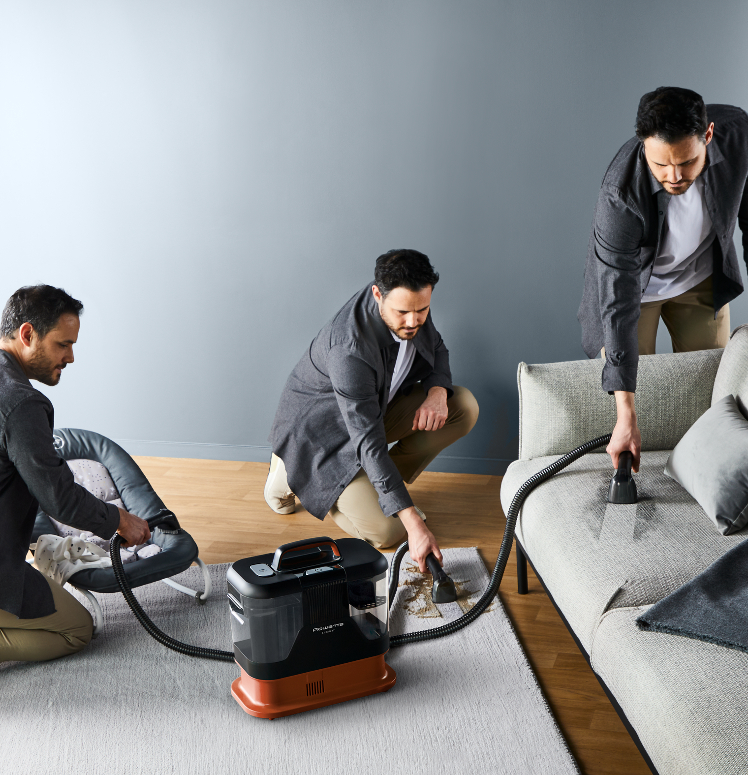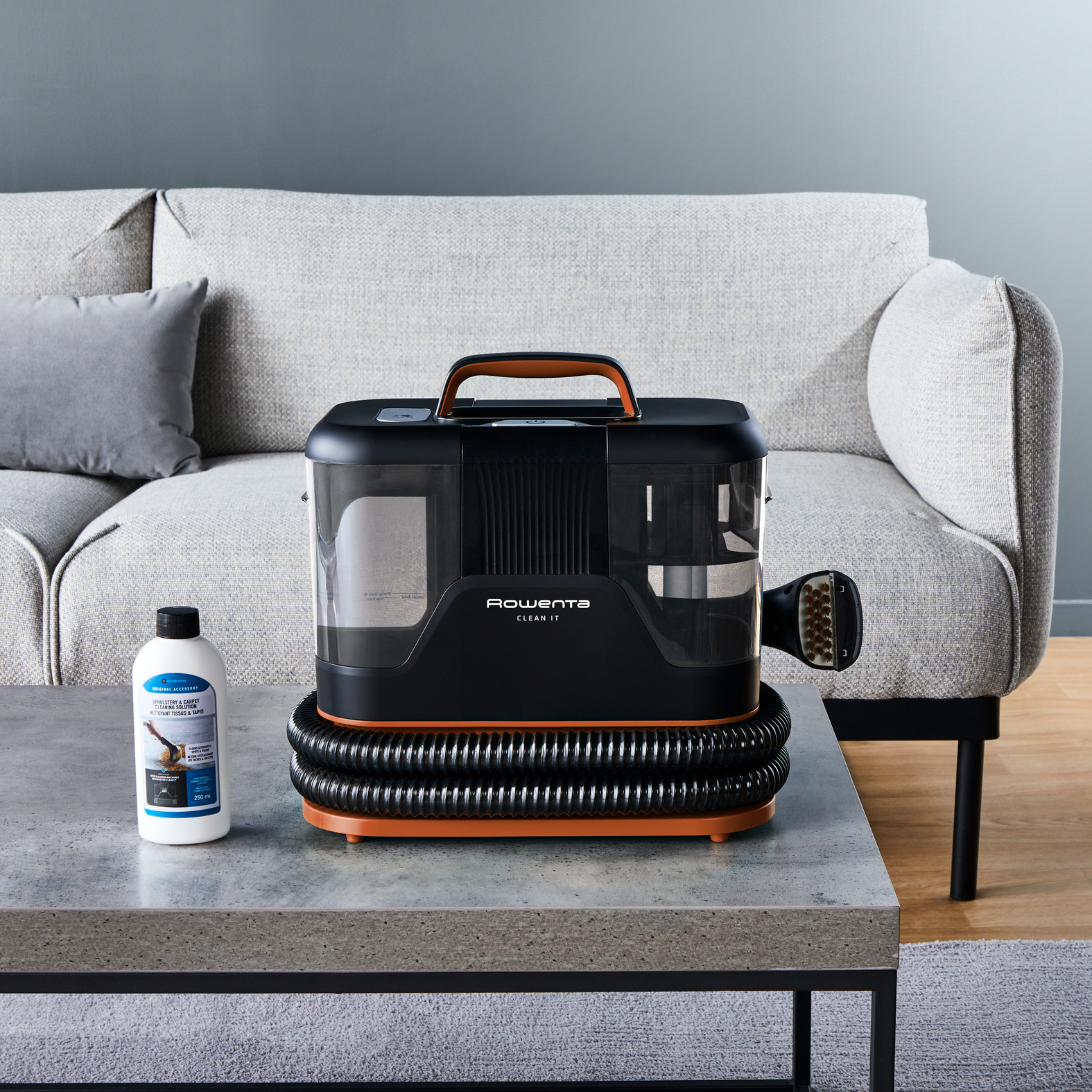 Mit dem Clean It von Rowenta haben Sie eine einfache und effiziente Lösung um alltägliche Verschmutzungen und Flecken im Handumdrehen zu beseitigen. Egal, ob es um die Reinigung von Spuren Ihrer Haustiere geht oder das Haus Ihrer Familie sauber gehalten werden soll, dieser Fleckenreiniger ist ein ständiger Partner, der immer in der Nähe ist. Entdecken Sie einen tragbaren Teppichreiniger für die schnelle und effiziente Reinigung, mit einer Vielzahl von Funktionen und einem intelligenten Design. Clean It: Perfekte tägliche Reinigung für ein makelloses Zuhause leicht gemacht. MULTI-REINIGUNG: Ein tragbarer Teppichreiniger mit einer Multi-Reinigungswirkung, der Wasser/Reinigungsmittel, Bürsten und Saugen (bis zu 12,5 kpa, mit einer Saugkapazität von bis zu 1 L alle fünf Sekunden, 400 W) kombiniert