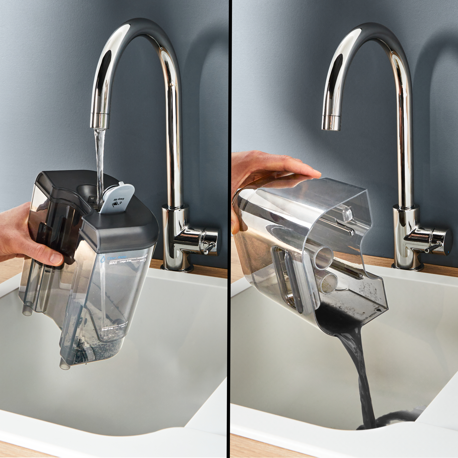 GENIESSEN SIE EINE REINIGUNG MIT LANGER AUTONOMIE: Großer, abnehmbarer 1,8-L-Tank für sauberes Wasser und 1,5-L-Tank für Schmutzwasser und eine lange Reinigungsautonomie, mit einem intelligenten Design für eine einfache Reinigung und Befüllung
