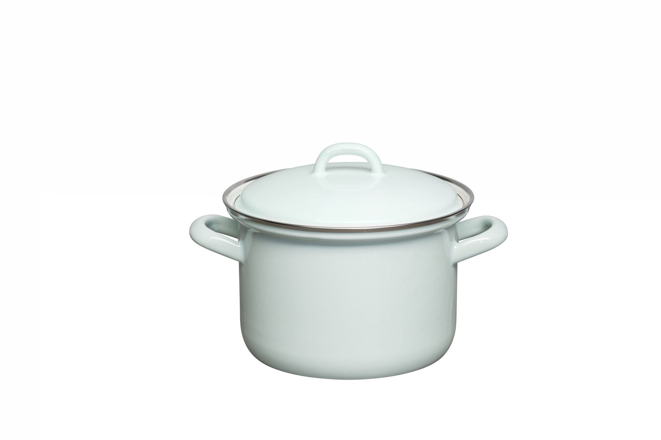 Emailletopf aus der Serie Mineralgrün, mit Deckel.