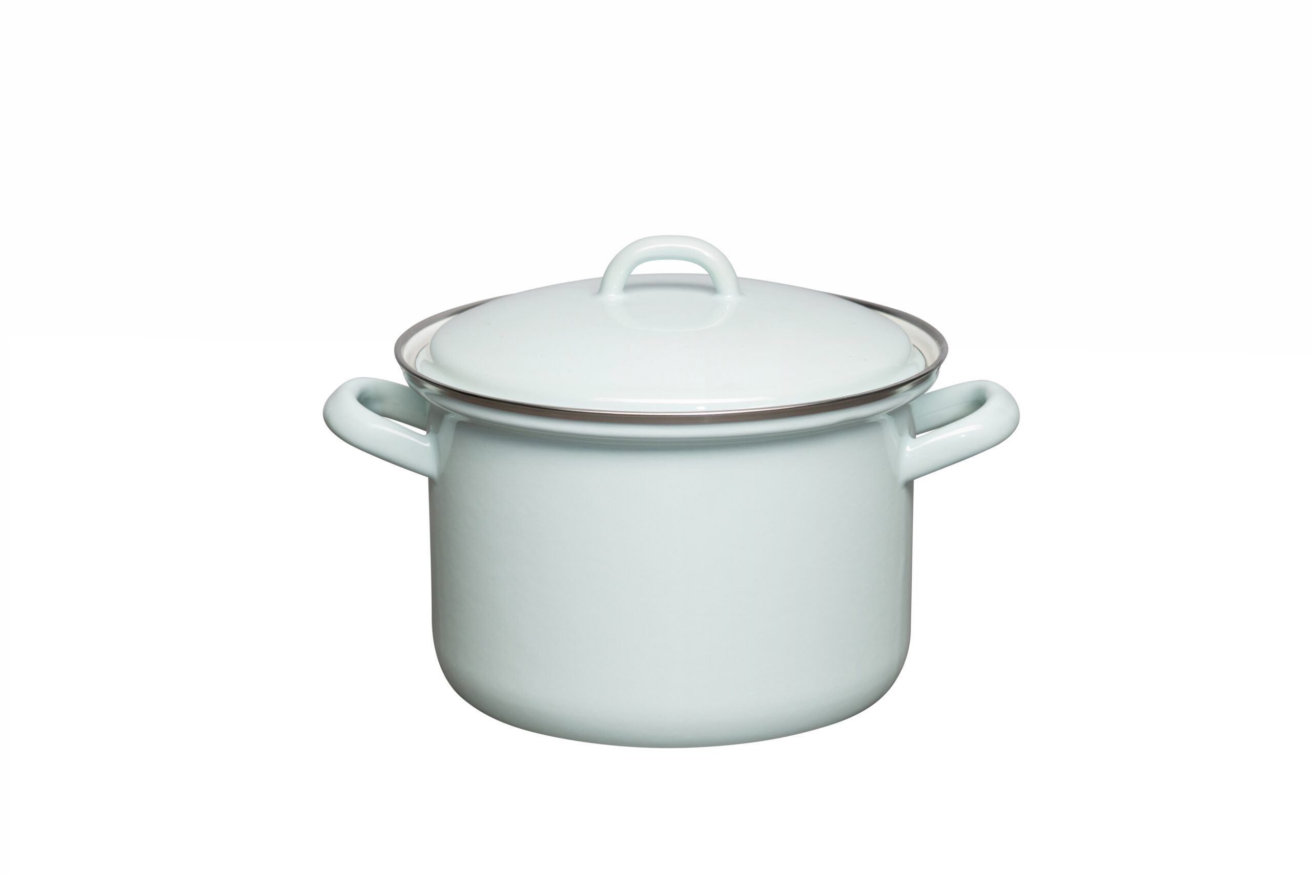 Emailletopf aus der Serie Mineralgrün, mit Deckel.