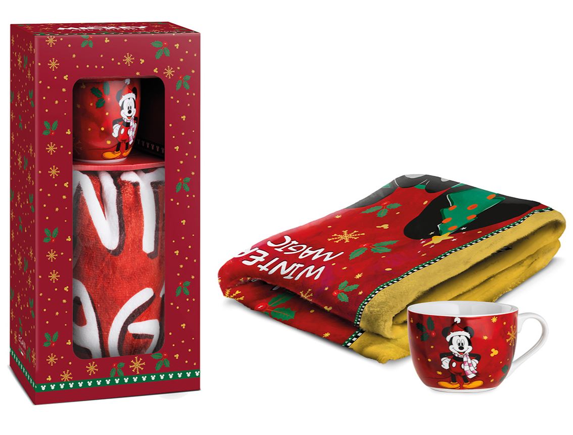 Die Serie „Mickey Mouse – Winter Magic“ besteht aus einer Decke und einem Porzellanbecher. Die perfekte Kombination von Kuscheligkeit und Wärme für kalte Tage.