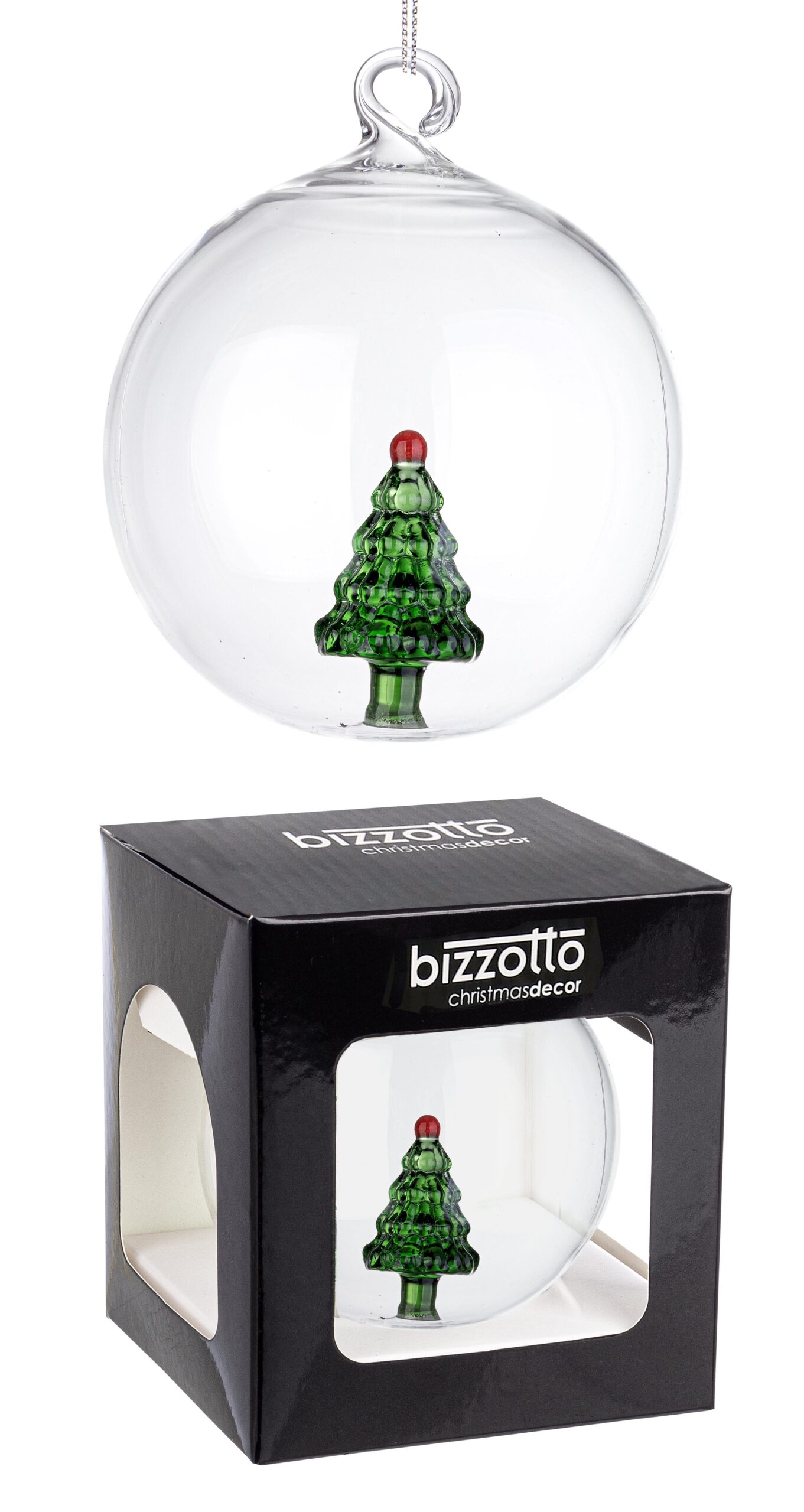 Baumkugel 8 cm, aus transparentem Baum mit innenliegendem Baum dekoriert.