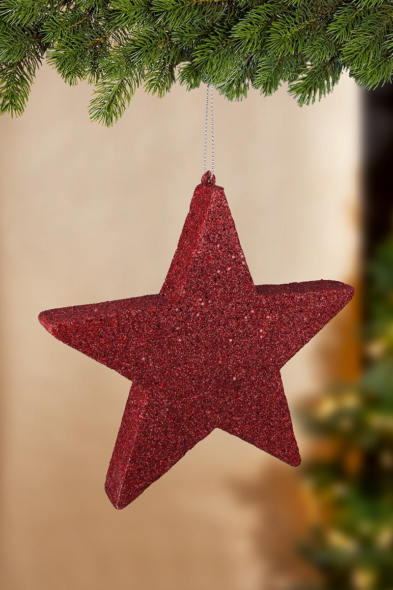 Der glitzernde Stern in Rot, eignet sich perfekt als Deko an der Haustür oder auch als Fensterdeko.