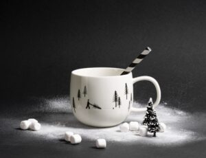 Der Henkelbecher aus feinem Porzellan, lädt zum Geniessen eines guten Heissgetränkes ein.