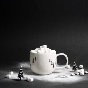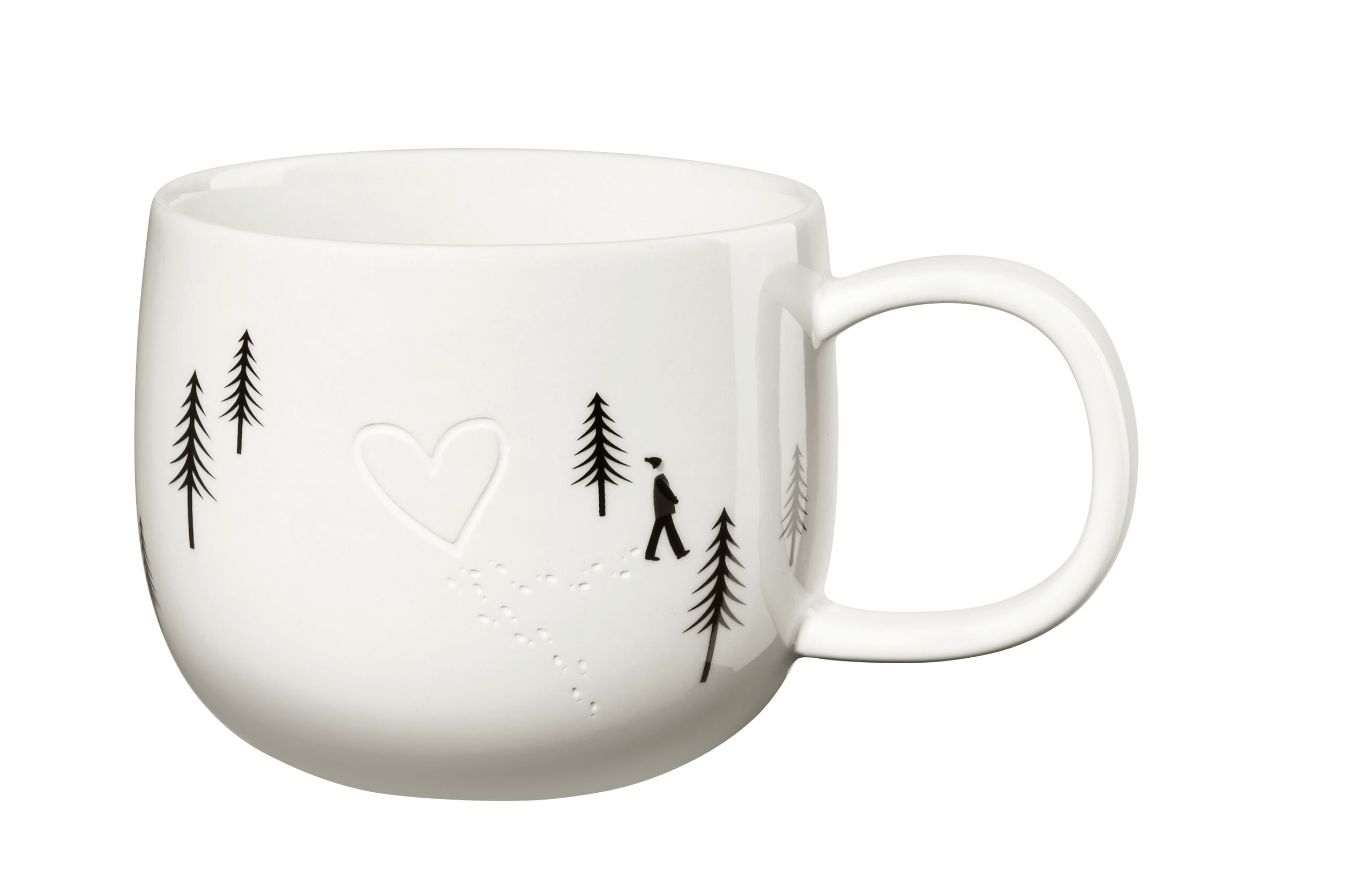 Der Henkelbecher aus feinem Porzellan, lädt zum Geniessen eines guten Heissgetränkes ein.