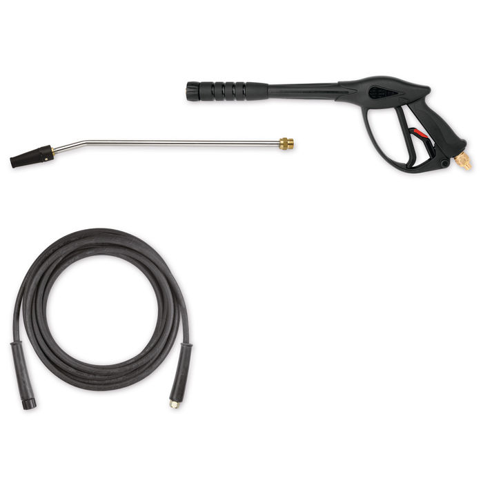 • Praktische Halterungen für Handspritzpistole, Strahlrohr, Hochdruckschlauch und Netzkabel