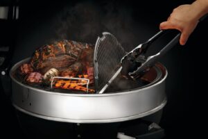 Die Gussgrillroste speichern die Wärme und bieten bestes Anbratverhalten. Sie sind klappbar, wodurch Sie leicht zusätzliche Kohle in den Grill geben, die Wasserbehälter nachfüllen oder Holz zum Smoken hinzugeben können