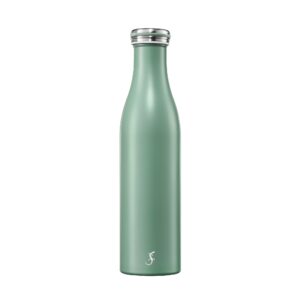 Die Isolier- Flasche hält dank ihrer Doppelwand-Vakuum-Isolation bis zu 12 Stunden heiß und 24 Stunden kalt. Zwei Edelstahlschichten umschließen ein Vakuum und reduzieren so den Wärmeaustausch zwischen Inhalt und Umgebung. Die innere Edelstahlwand ist zudem mit Kupfer beschichtet, um Wärmeenergie zu speichern und so die Isolierung zu optimieren. Auf diese Weise bleibt dein Getränk bis zu 24 Stunden kalt. Wenn du einen warmen Kakao oder Tee in der kalten Jahreszeit bevorzugst, bleibt dein Heißgetränk bis zu 12 Stunden heiß.