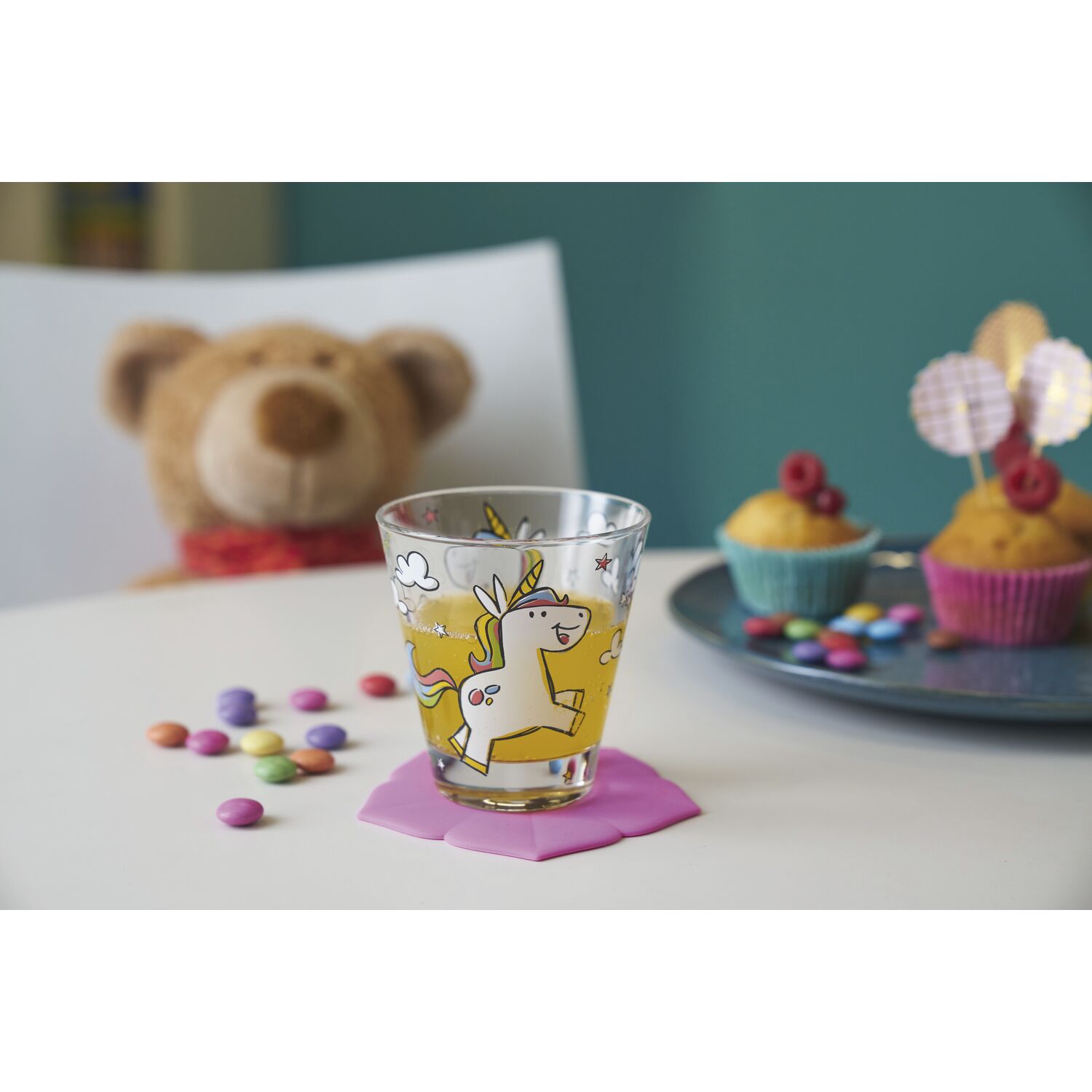 Trinkglas für Kinder mit Motiv „Einhorn“.