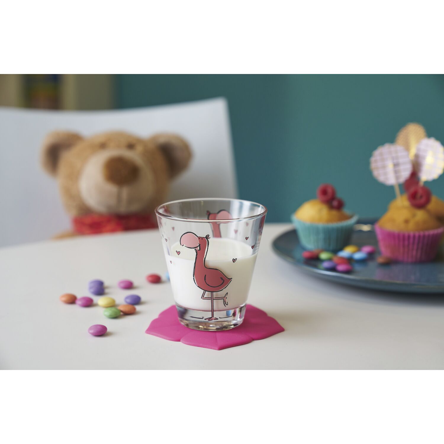 Trinkglas für Kinder mit Motiv „Flamingo“.