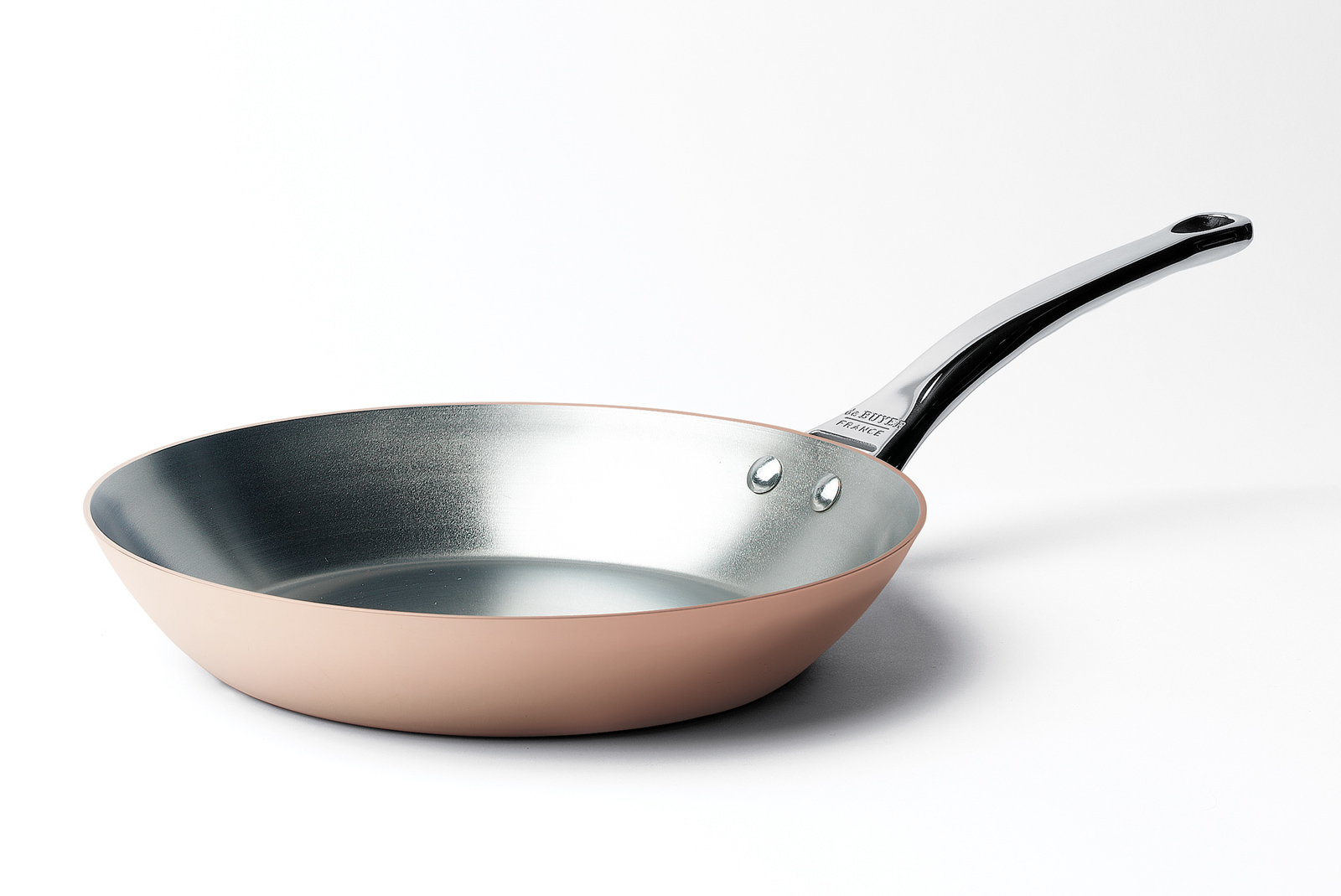 Die genieteten ergonomischen Griffe aus Edelstahl liegen gut in der Hand und garantieren sicheren Halt. Das De Buyer Kupfergeschirr wird zu 100% in Frankreich handgefertigt und jedes Stück ist ein Unikat.