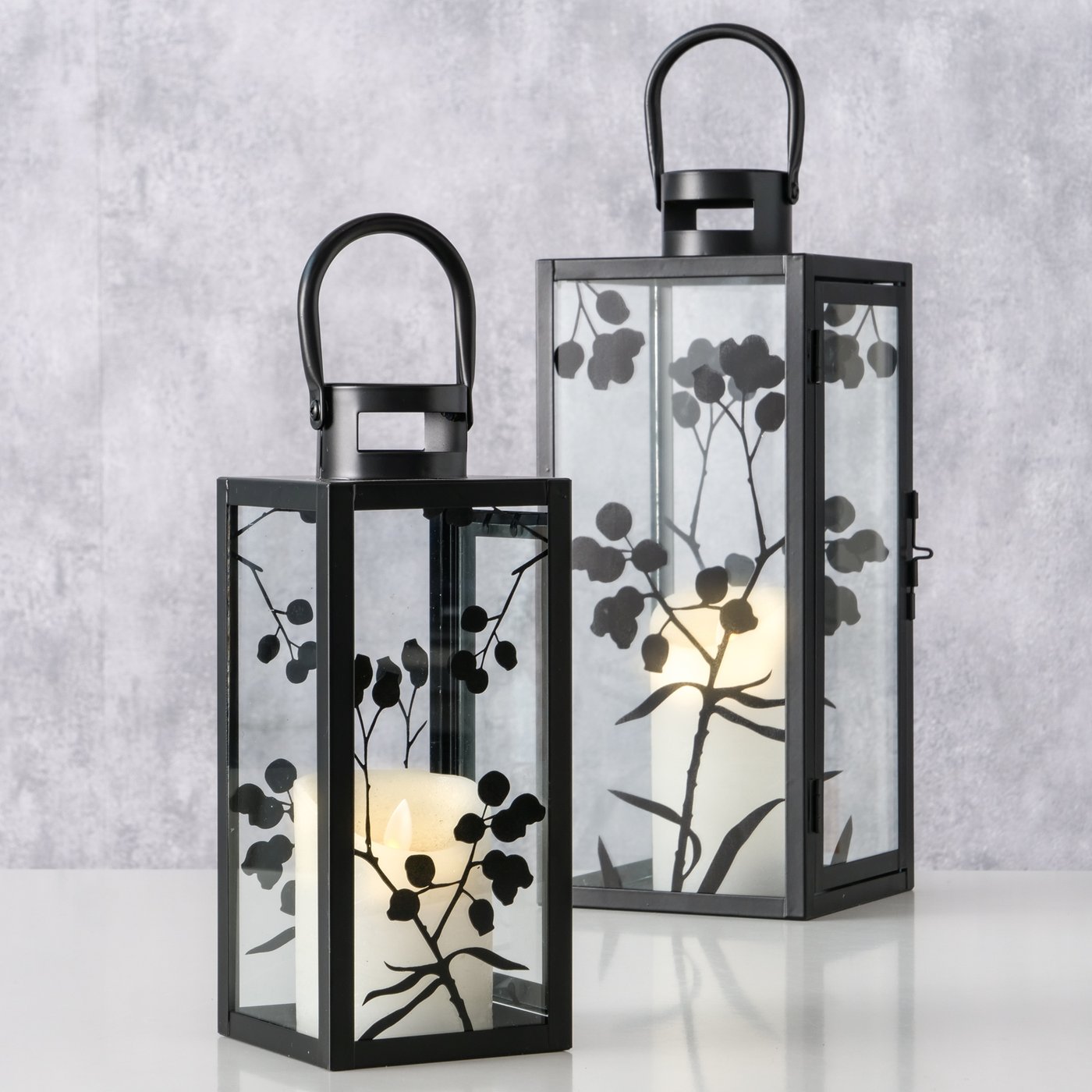 Laterne „Berries“ für den Indoorbereich. Die Eisen pulverbeschichtete Laterne verfügt über einen Glaszylinder, um Verschmutzungen durch die Kerze vorzubeugen.