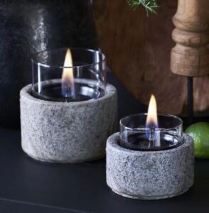 Die Kamine und Kerzen brennen mit Tenderfuel, einem patentierten, umweltfreundlichen Brennstoff. Es verbrennt sauber, ohne Schadstoffe oder Rußbildung und ist bei normalem Gebrauch völlig unbedenklich.