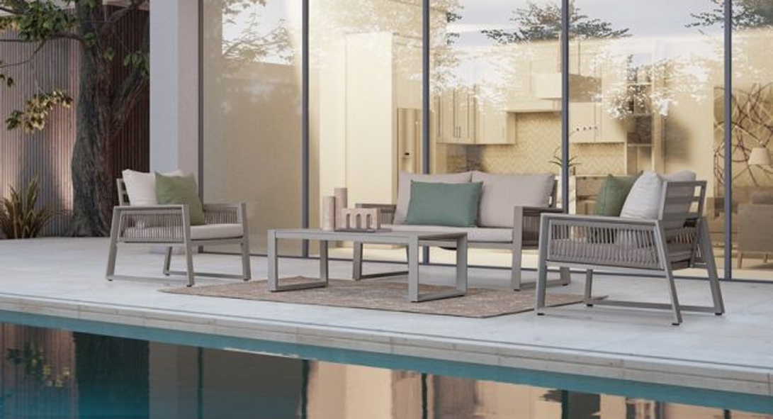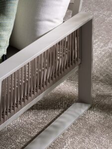 Ein besonderes Highlight ist das elegante Seilgeflecht aus 5 mm starkem Textilene, das der Garnitur ihre moderne, luftige Optik verleiht und gleichzeitig wetterbeständig und langlebig ist.