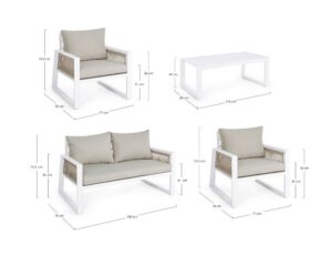 Das stabile Aluminiumgestell mit hochwertiger Polyester-Pulverbeschichtung sorgt für Leichtigkeit, Robustheit und dauerhaften Schutz vor Witterungseinflüssen. Die Sitzflächen aus Textilene bieten angenehmen Komfort und überzeugen durch ihre strapazierfähige, pflegeleichte Oberfläche.