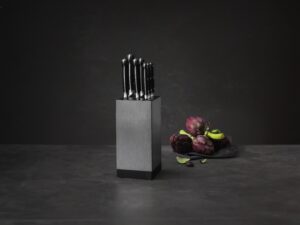 Messerblock aus gebürstetem Aluminium für 7 Messer.