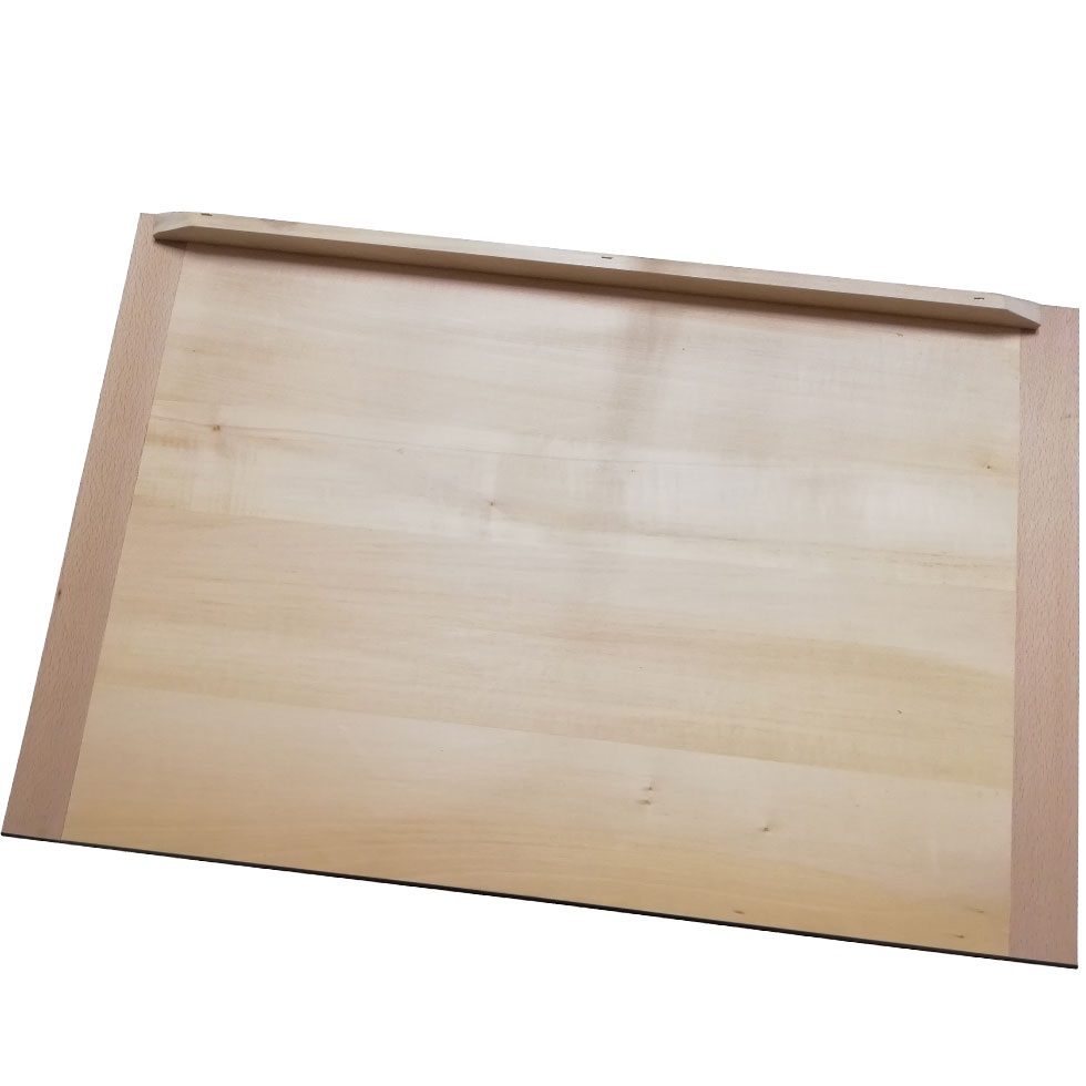 Nudelbrett aus Lindenholz mit Anschlagkante. Die vordere Anschlagleiste liegt an der Arbeitsfläche an und verhindert ein Bewegen und Abrutschen. Das massive Lindenholz besitzt eine geinge Haftkraft gegenüber dem Teig.