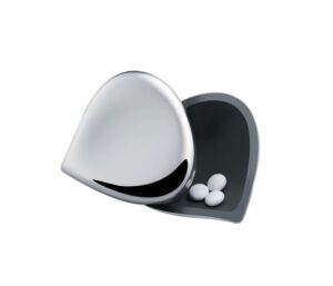 Ein italienischer Volksglaube besagt, dass eine Rosskastanie in der Tasche Erkältungen fernhält. Von dieser Vorstellung inspiriert haben Lorenza Bozzoli und Gabriele Chiave eine sehr originelle kastanienförmige Pillendose entworfen. Die flache Seite der Kastanie hingegen ist der Deckel, der sich dank des kleinen Drehverschlusses leicht mit einer Hand öffnen und schließen lässt.