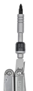 Feste Schrauben sind für den Ratchet Driver kein Problem. Damit können Sie Schrauben mit mehr Drehmoment drehen, ohne Ihren Griff zu verändern. Die magnetische Spitze hält den Bohrer an Ort und Stelle und die Ratsche hat drei Richtungen: Vorwärts, Rückwärts und Fest. Und der Magnet hält den Bohrer an Ort und Stelle. Es funktioniert mit jedem Leatherman-Tool, das über einen großen Bit-Treiber verfügt. Der Ratchet Driver passt in Ihre Tasche und lässt sich leicht überall hin mitnehmen.